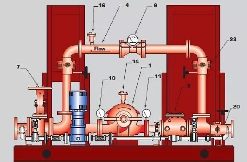 單臺消防水泵的流量不大于 20L/s、設計工作壓力不大于 0.50MPa 時,泵組應預留 測量用流量計和壓力計接口,其他泵組宜設置泵組流量和壓力測試裝置。