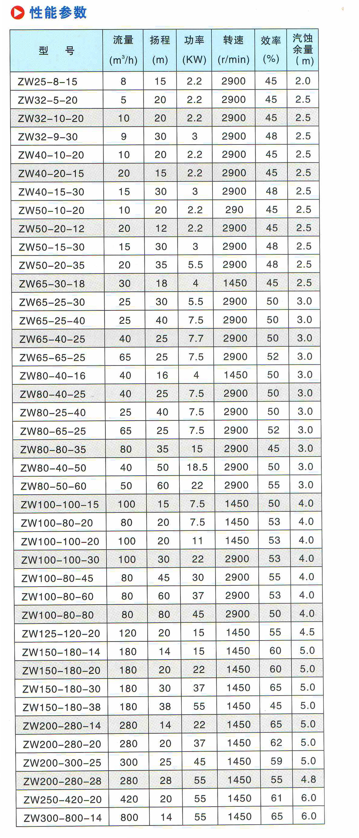 水泵參數說明